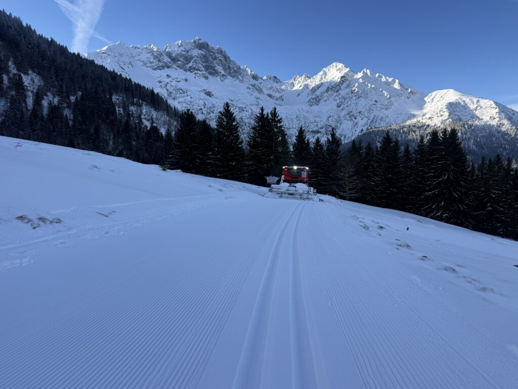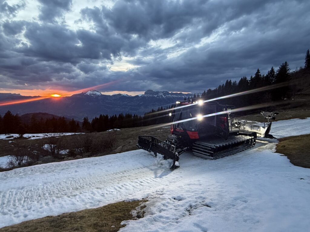 Cortana, notre fameuse dameuse exécute son tout dernier tour de piste et contemple le soleil couchant : tous deux étincellent d’un bel éclat, méditant sur leur complicité et son cortège d’indicibles secrets nordiques… Cortana ne peut s’empêcher de penser aux débuts de l’histoire de ce modeste domaine de Beldina, dont la réussite tenait de la gageure : agiter, comme dans une éprouvette, l’insertion professionnelle et la gestion d’un domaine nordique ! Les « Cassandre » étaient partout : « il n’y aura plus de neige à ces altitudes trop moyennes », « le ski nordique est mort », etc. tels étaient les leitmotiv de l’époque, mais ces oiseaux de mauvais augure étaient-ils de si bons visionnaires… notre modeste association Arece a relevé le défi et cette saison a sonné comme une gentille revanche : non, le ski de fond n’a pas trépassé, non la neige ne s’est pas définitivement évaporée, oui on peut placer des personnes en recherche de réinsertion professionnelle sur des trajectoires positives grâce à Beldina. Et c’est Vous, Nobles Fondeurs, qui avez rendu possible cette belle action : une humble association de réinsertion peut gérer, et c’est unique en France, (et certainement dans l’univers !) un domaine nordique avec succès ! il vous a certainement fallu des trésors de patience pour attendre des crêpes certes délicieuses mais servies parfois avec la nonchalance des îles, il vous a fallu une tolérance absolue pour subir les écrits du lutin scribouillard, sans nul doute cocaïnomane le matin et opiomane le soir, il vous a fallu une compassion mystique pour supporter la qualité aléatoire mais toujours bienveillante de l’accueil. Cependant l’essentiel est là : les salariés, grâce à vous, ont vécu des moments riches qui consolideront leur foi en des jours meilleurs ! Par ailleurs tous les records sont battus (les caisses sont pleines de ducats, de doublons et de sesterces) et l’équipe est dopée pour proposer la saison prochaine de belles idées et notamment le retour des nocturnes.