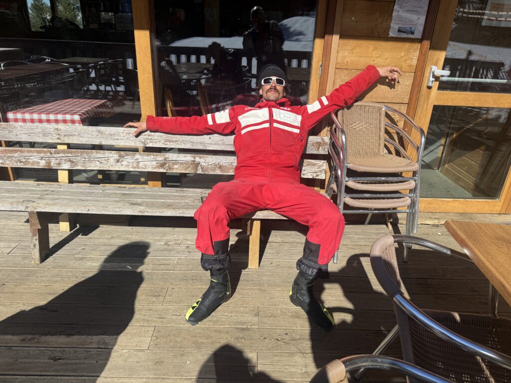 Mercure à 18°C, nuages jaunes en provenance du Sahara, il ne manque plus que les tomawaks, F35 et autres instruments de l’Apocalypse pour dévaster les pistes enneigées de Beldina. Heureusement protégés par nos redoutables canons à confettis, les lutins n’en sont pas encore à faire appel à Sainte Rita, patronne des causes désespérées car le domaine reste préservé et la glisse y est fort divertissante. Après avoir apprivoisé la célèbre tortue Ninja (l’accompagnateur en montagne tout de vert vêtu, le jolicoeur (pas du tout bellâtre)  de Beldina , les lutins ont entrepris de domestiquer un grand lézard rouge qui se dore la pilule sur la terrasse inondée de soleil du chalet nordique. D’après nos lutins comportementalistes, ce reptile à longue queue ne bronze pas, il mentalise le demi-pas de patineur : quand il se réveillera dans deux ou trois siècles, nous irons lui demander ses secrets nordiques, prudemment…